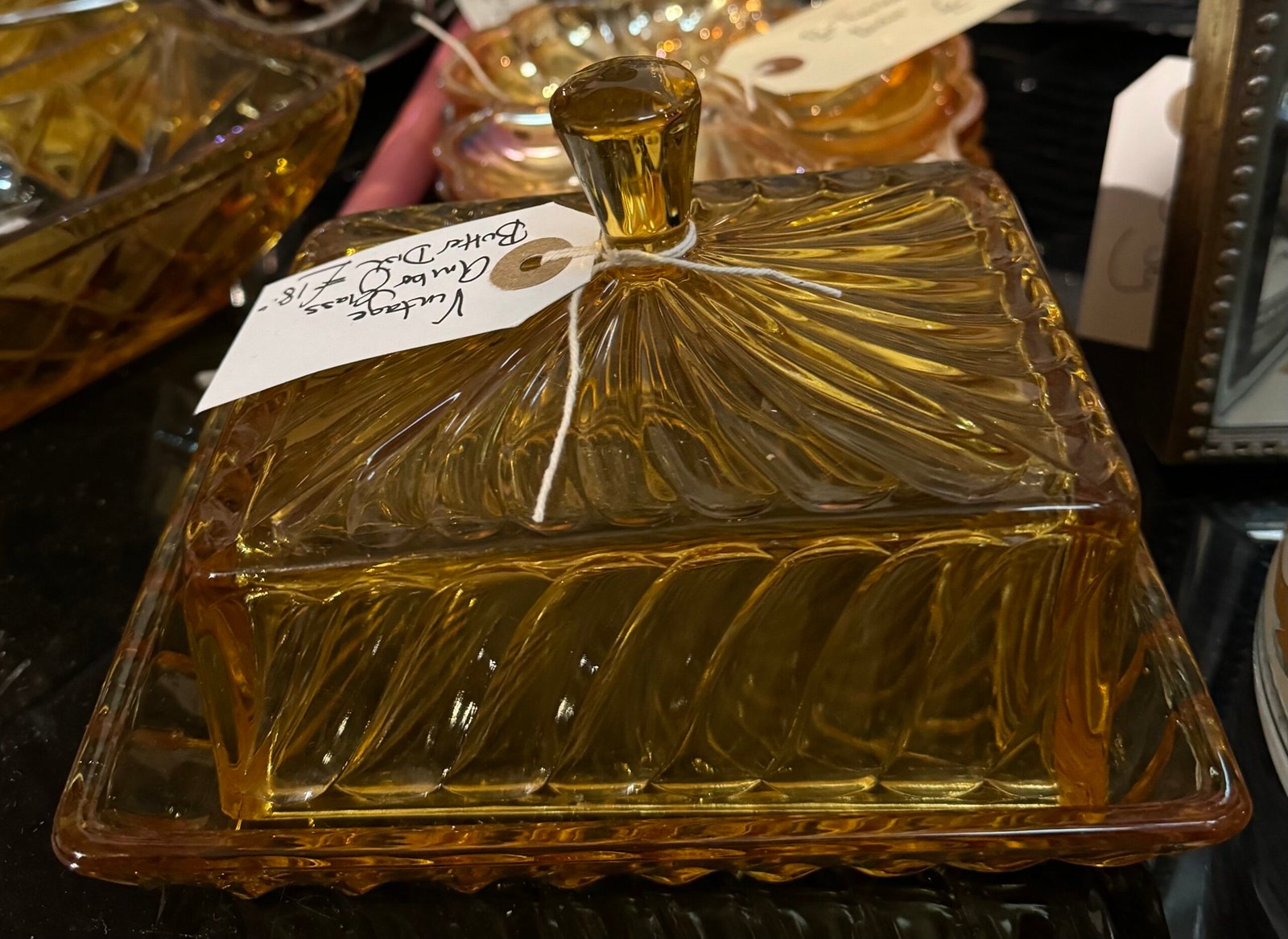 Vintage Amber glass butter dish